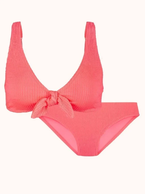 The Ruched Plunge Bralette & Bikini Swim Bundle: Electric Pink