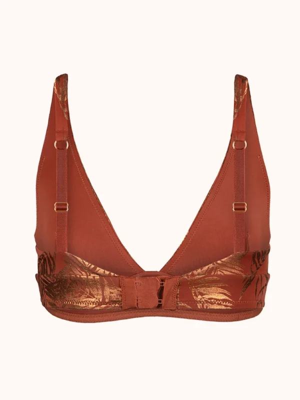 The Metallic Palm Plunge Bralette: Burnished Mahogany/Metallic Palm Print