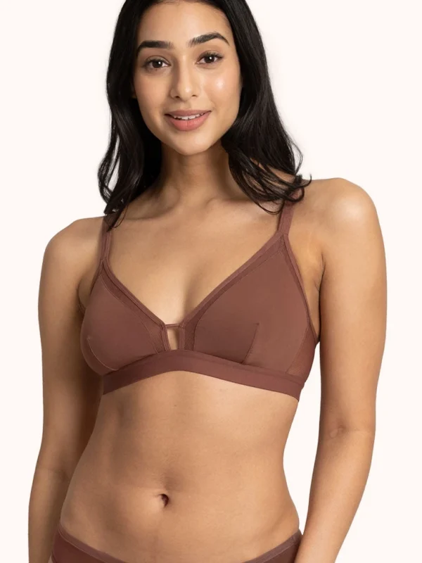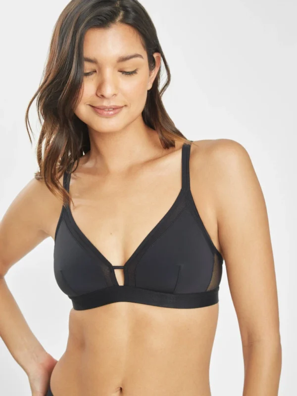 The Mesh Trim Padded Bralette Trio: Toasted Almond/Jet Black/Smoke