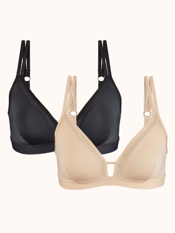 The Mesh Trim Padded Bralette Bundle: Toasted Almond/Jet Black