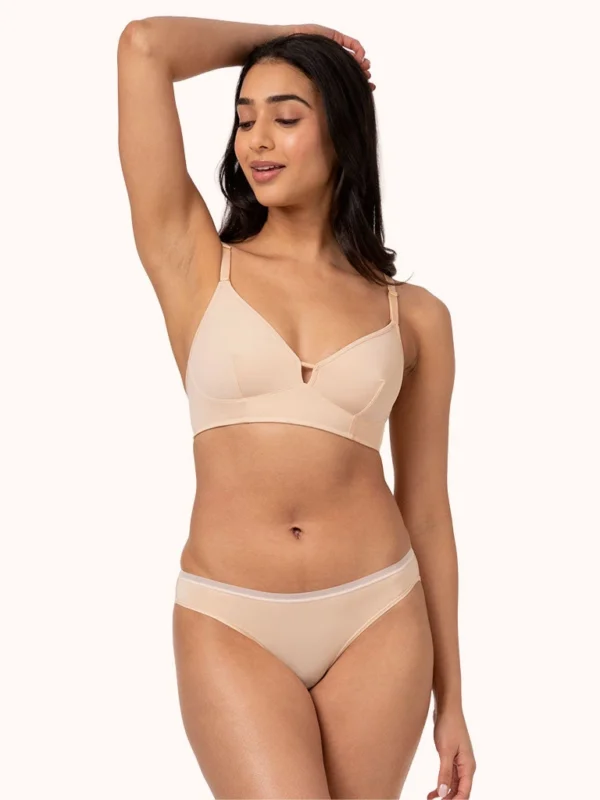 The Mesh Trim Padded Bralette Trio: Toasted Almond/Jet Black/Smoke