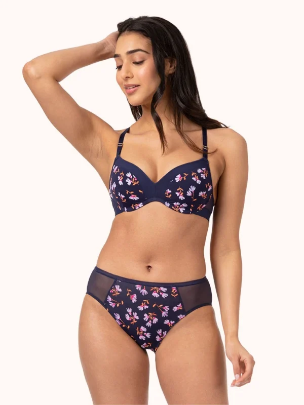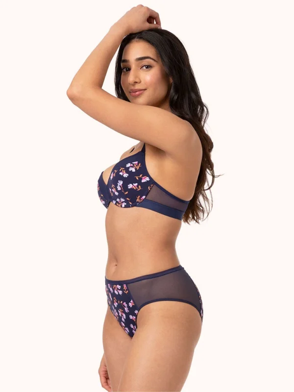 The Mesh High Waist Bikini: Navy Daisy