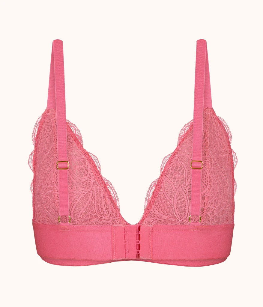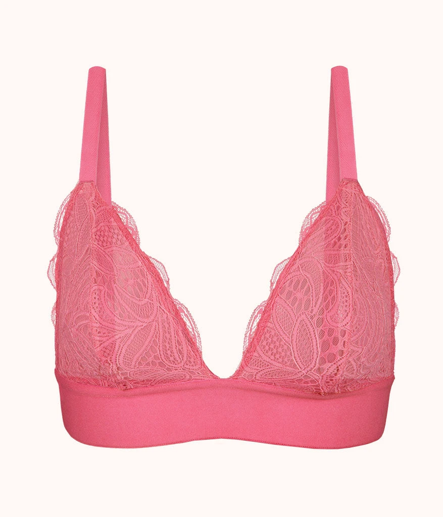 The Long-Lined Lace Bralette: Pink Hibiscus