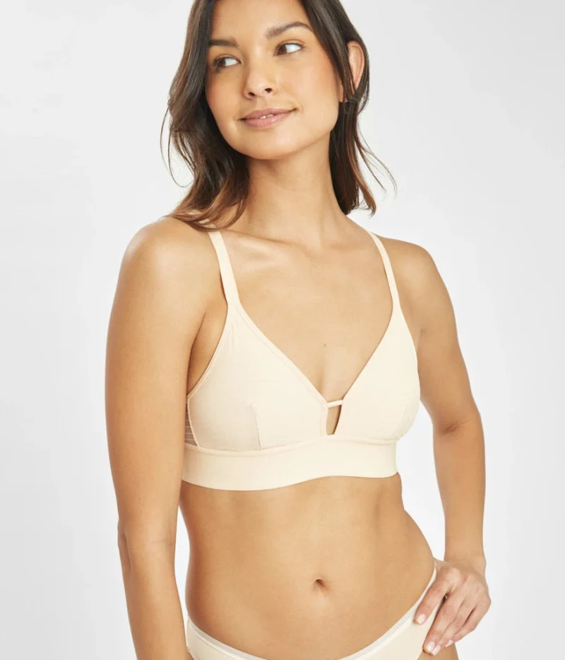 The Stripe Mesh Bralette: Toasted Almond